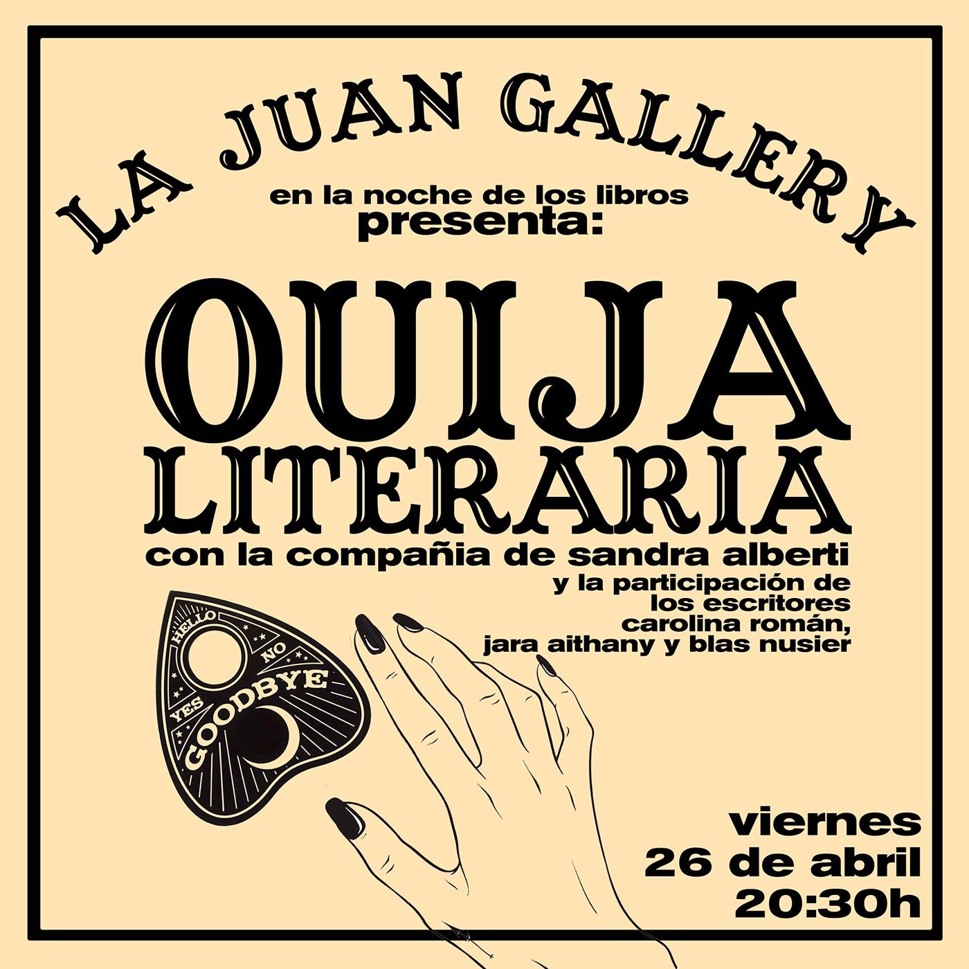Una sesión de espiritismo en la que se invita a escritores vivos a conectar con sus escritores muertos favoritos mediante la utilización de una Ouija. El evento está dirigido por la medium Sandra Alberti, que ejerce como canal para dar voz a estos escritores fallecidos. Asimismo la Ouija Literaria sirve como plataforma para la promoción de estos escritores vivos cuya obra literaria merece hacerse un hueco en la historia de la literatura universal. Hasta ahora se ha contado con la presencia de Paco Bezerra, María Velasco, Cosimo de Monroy, Blas Nusier, Jara Aithani, Nerea Pérez de las Heras o Chus Gutiérrez entre otros.